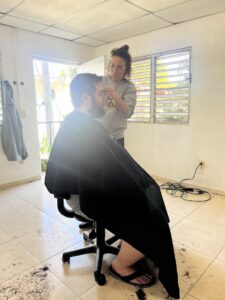 - Getting our hair cut