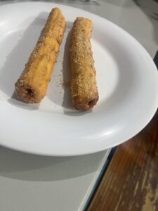 We’ve had a night off every week, so we’ve made it our goal to use that time to get out of the guesthouse and spend time together, it is becoming our weekly date night, where we go out to dinner, then come back to either play a game together or watch our show (Percy Jackson and the Olympians) and enjoy a break. We think we’ve also found a regular spot that we’ll be hitting up on these nights… while I was checking google maps for a place I had seen before, I stumbled upon a little churro place that happened to be a few minutes away from where we were on our way home after dinner one night. I said out loud that it looked good and we should stop sometime, Christian said we should go right then, so we did, because honestly, when is a spontaneous churro run not a good idea? We had some of the best churros I’ve ever had and discussed how dangerously close to the guesthouse this place was. It’s quickly becoming a weekly tradition to get churros for dessert, and the occasional empanada.