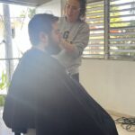 - Getting our hair cut